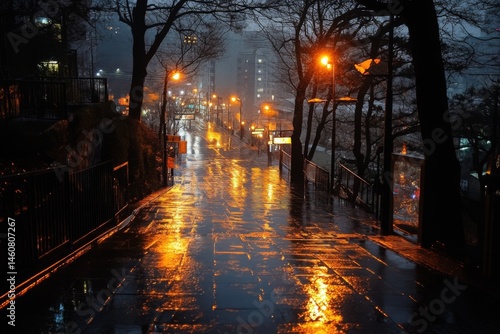 rain, night, street, light, wet, city, glow, urban, dark, moody, atmosphere, pavement, car, evening, weather, road, storm, rainy
