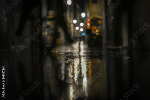 Rainy streets of Nice in the evening