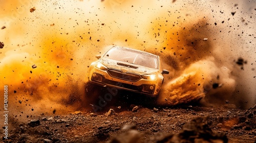 car, rally, racing, speed, dust, dirt, offroad, action, adventure, competition, automotive, vehicle, sport, motorsport, powerful, fast, motion, energy, power, driving, excitement, intense, dynamic, movement, force, thrill, terrain, challenge, extreme, impact, gold, brown, cloud, explosion, photo, photo, image, picture, shot
