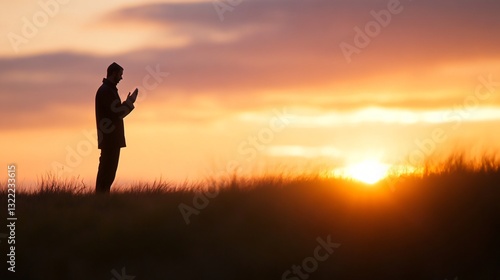 ramadan, silhouette, person, sunset, individual, standing, hilltop, vibrant, orange, purple, sky, peaceful, moment, nature, appreciation, landscape, calmness, horizon, beauty, solitude, dusk, calm, scenery, outdoors, serenity, exploration, freedom, adventure, stillness, environment, skyward, warmth, elevation, vista, awe, inspiration, mindfulness, quietude, joy, wonder, escape, connection