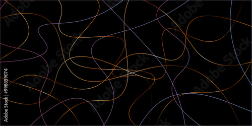 Random pattern colorful line stroke on a transparent background. Chaotic random lines abstract geometric pattern vector background. Decorative golden pattern with tangled curved lines.