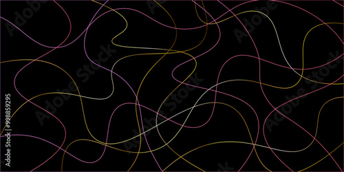 Random pattern colorful line stroke on a transparent background. Chaotic random lines abstract geometric pattern vector background. Decorative golden pattern with tangled curved lines.