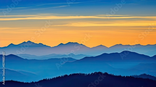 range, blue, yellow, sky, illustration, sunrise, mountain, silhouetted, majestic, peak, warm, gold, light, deep, soft, hue, awe, nature, beauty, glory, breathtaking, sight, wonders, natural, earth, background, photograph