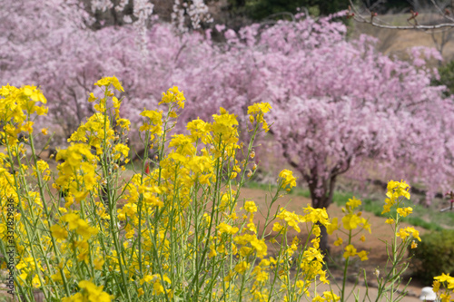 Rape blossoms and shidare sakura in Ibaraki Japan
