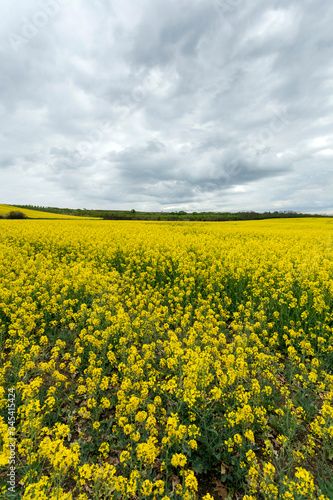 Rapeseed field under cloudy sky
