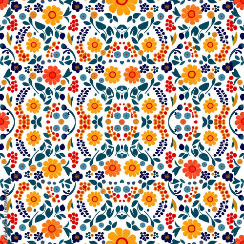 pattern, flower, daisy, daisy, summer, spring, garden, flourish, small, summer, endless, flower petals, leaf, floral, seamless, background, shape, springtime, ornate, hand-drawn, hand, drawn, hallucinogen, watercolor, botanical, repeating, flower, wallpaper, design, decorative, rapport, colourful, white, blue, orange, green, texture, tile, tapestry, fabric, illustration, textile, tilling, ornamentation, generative, ai, copy space, print