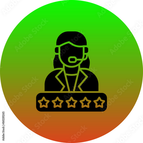 rating, feedback, review, agent, female, vector, icon, illustration, support, service, help, info