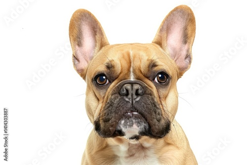 Ravishing French Bulldog with Curious Face Portrait on White Isolated Background
