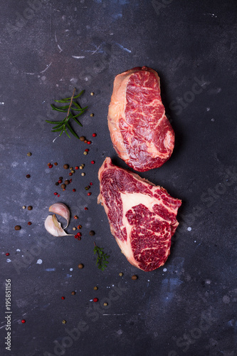 meat, raw, beef, steak, background, black, space, red, fresh, table, cooking, dark, ingredient, view, cut, uncooked, top, veal, food, fillet, rosemary, copy, slate, dinner, spice, seasoning, beefsteak, product, herb, up high, preparation, salt, rare, chop, marbled, tenderloin, pepper, spice, eye, green, rib, long legs, blood, stone