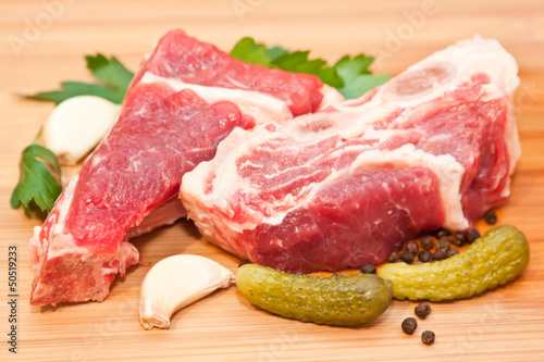 meat, beef, uncooked, raw, pepper, garlic, parsley, spoon, wood, wooden, chopping, board, cut, cutting, background, bar-b-q, beefsteak, bloody, butcher, butchering, chop, cow, fillet, grill, grocery, vegetable, ingredient, kitchen, bone, muscle, piece, portion, prepared, red, cucumber, slice, steak, spicey, spice, closeup, cookery, delicious, dinner, dish, food, fresh, meal, tasty, cook
