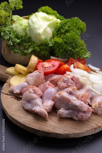 animal, background, bird, board, chicken, cook, cooking, cookery, cutting, dish, fat, food, fresh, freshness, healthy, hen, ingredient, meal, meat, onion, pink, plate, potato, raw, eatery, skin, tomatoes, uncooked, white, wing, wing, wooden