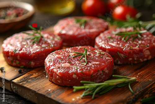Raw Ground beef meat Burger steak cutlets on wooden background