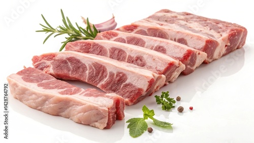 Raw pork spare ribs isolated on white backgrounds