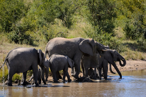 african animal, african wildlife, elephant, herd, african elephant, animal, big five, bushveld, day, drinking, endangered, fauna, green, grey, african elephant, mammal, outdoors, outside, pan, duck pond, south africa, waterhole, wildlife