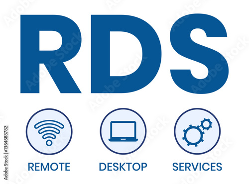 RDS - Remote Desktop Services acronym, business concept background. Vector illustration for website banner, marketing materials, business presentation, online advertising.
