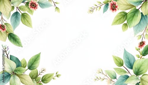 Ready to use Card. Herbal Watercolor invitation design with leaves. watercolor background. floral elements, botanic watercolor illustration. Template for wedding. frame isolated with white highlig