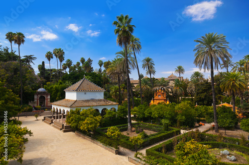 seville, park, garden, nature, palace, seville, tree, real, citadel, fountain, spain, castle, architecture, patio, courtyard, travel, background, old, summer, retro, landmark, royals, spanish, sun, blue, sky, cloud, statue, building, andalusia, arabic, arch, green, palm, pool, stone, tour tourism, wall, water, pathway, house, king, footpath, passage, paseo, bush, foliage, landscape