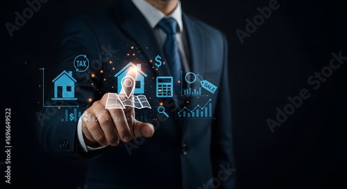 real estate, investment, analysis, businessman, digital, interface, icon, property, growth, financial, planning, market, research, business, house, map, location, calculating machine, magnifying glass, sale, tags, tax, dollar sign, graph, chart, datum, technology, concept, future, strategy, valuation, profit, economy, building, architecture, realtor, broker, home buying, appraisal, mortgage, loan, residential, commercial, urban, suburban