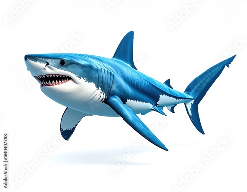 Realistic 3D rendered inflatable shark toy with detailed textures and vibrant blue color, designed for aquatic theme decorations or educational displays