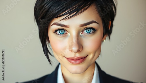 Realistic close-up of a glamorous 30-year-old Caucasian female professional