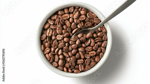 Realistic cocoa and coffee beans in a white bowl for culinary and beverage concepts