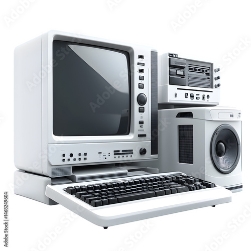 computer, monitor, keyboard, technology, desktop, screen, display, digital, camera, mouse, business, office, lcd, equipment, laptop, desk, cyberspace, electronic, black, old, design, tower, network, three-dimensional