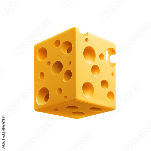 Realistic depiction of a block of cheese with holes and a vibrant yellow color, perfect for food-related concepts and culinary artwork