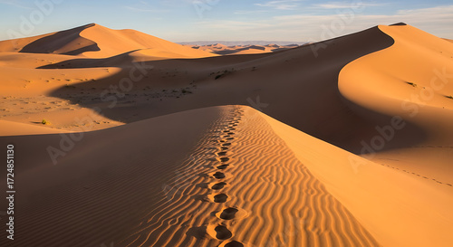 Realistic Desert Dunes with Footprints Leading Away
