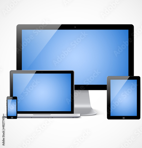 Realistic devices set template with blue screen