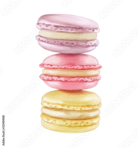 Realistic digital illustration art macarons macaroon French dessert cookies