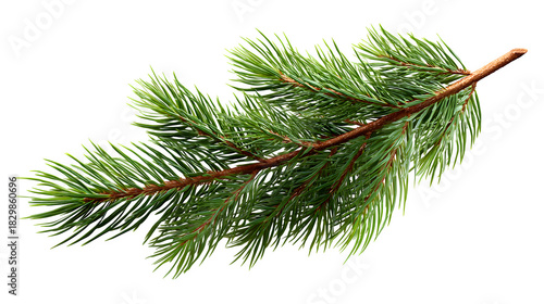 Realistic fir branch with pine needles and soft lighting detail isolated on white background