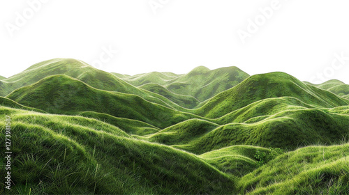 Realistic Green Hills Landscape Isolated on Transparent Background