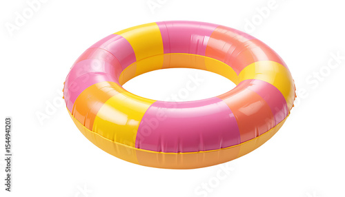 Realistic Inflatable Swim Ring Pink and Yellow Color Combination for Summer Beach and Pool Fun Isolated on Transparent Background