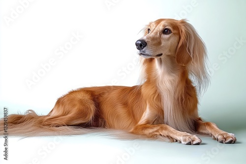 Realistic Portrait of a Saluki Dog Lying Down on White Background