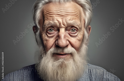 elderly, man, bearded, closeup, senior, portrait, caucasian, grey, background, face, closeup, wrinkle, realistic, hair, ageing, sharpened, white, emotional, detailed, expressive, eye, looking, curious, wise, intense, facial hair, thoughtful, human, masculine, nose, eyebrow, lip, contemplative