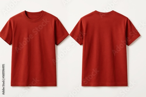 Realistic premium red cotton t-shirt mockup template displaying both front and back views for professional product presentation