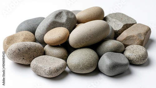 Realistic Smooth Sea Pebbles and Stones on a Uniform Background, Natural Coastal Beauty