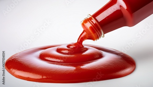 realistic stream of ketchup pouring from bottle with thick glossy texture on isolated background tomato sauce for food packaging and design