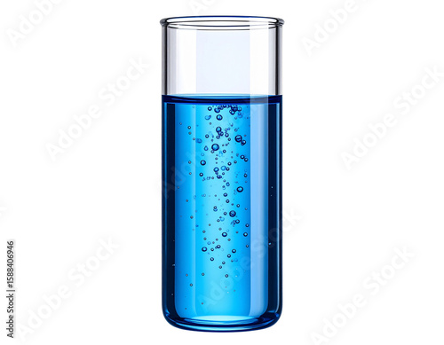 Realistic Test Tube with Vibrant Blue Liquid and Air Bubbles, Transparent Background