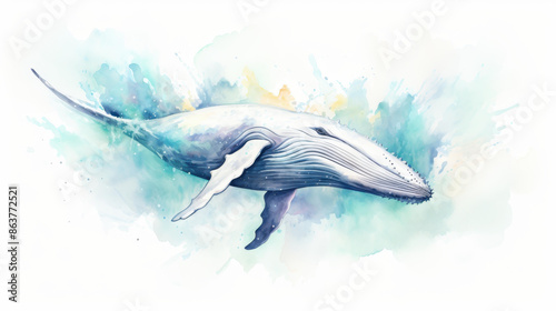 Realistic watercolor illustration of a whale on a white background for cover, card, print, or interior design.