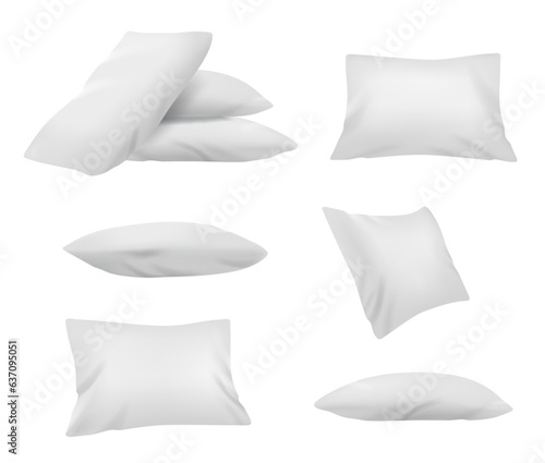 Realistic white rectangle pillows. Mockup set of pillows. Vector realistic illustration