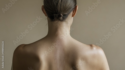 woman, bare, back, smooth, skin, rear, view, neutral, background, ample, copy, space, beauty, health, model, portrait, feminine, elegance, natural, relaxation, body, wellness, minimalism, simplicity, soft, texture, aesthetic, skincare, confidence, calmness, attractiveness, style, imagery, art, design, sharpened, sensual, fashion, lifestyle, female, femininity, personal, individual, closeup, contemporary, casual attire, symmetry, arm, shape