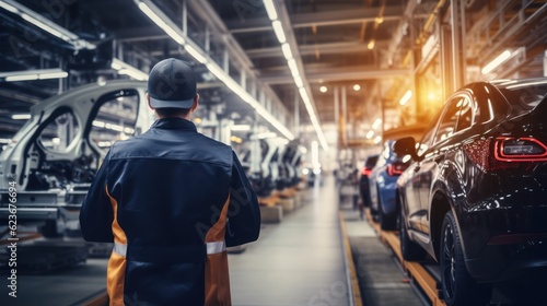 Rear view of automotive mechanic repairman look car condition in garage. Vehicle service male work in mechanics workshop. Generative Ai