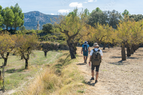 backview, 2, man, male, hiker, backpack, activity, walking, pathway, field, green, tree, hiking, landscape, active, nature, natural, mountain, person, unrecognizable, people, adult, lifestyle, adventure, backpacking, beautiful, copy space, exploration, trekking, healthy, journey, scenic, sky, spain, summer, sunny day, holiday maker, travel, vacation