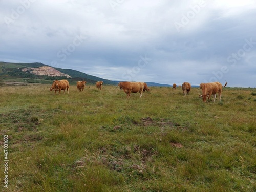 Rebaño de vacas en la montaña de Lugo, Galicia