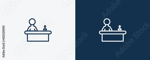 reception icon. Outline reception icon from hotel and restaurant collection. Linear vector isolated on white and dark blue background. Editable reception symbol.