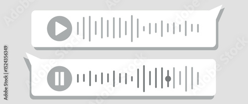Recording of audio message template. UI element of audio record in speech bubble. Vector illustration isolated on a white background. Voice Message UI Design with Play and Stop Preview.