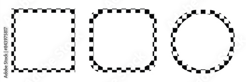 Rectangle frame with checkered print on borders. Rectangular vignette with checkerboard, race flag or chess game pattern isolated on white background.
