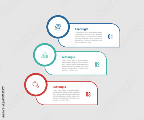 rectangle shape infographic diagram with growth step with circle badge on top with 3 step for slide presentation