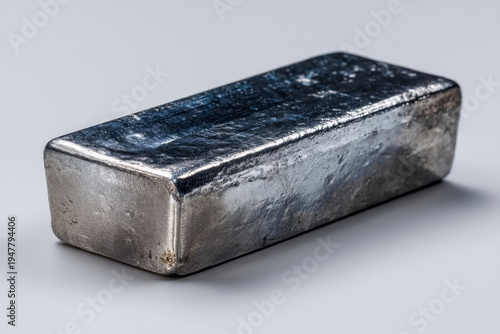 Rectangular machined metal ingot block with smooth surface on neutral background